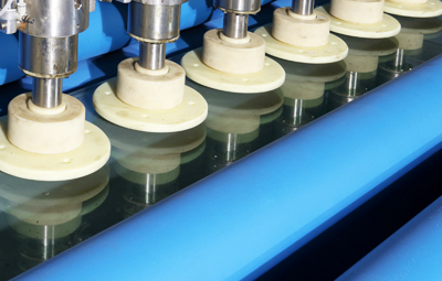 JL8K鏡面拋光機(jī)為單機(jī)16磨頭,客戶可根據(jù)產(chǎn)能的要求配置多臺(tái)單機(jī),組成鏡面拋光生產(chǎn)線。過濾系統(tǒng)(選購)可以將磨料混合物從金屬廢屑中過濾出來,回收利用。清洗和烘干設(shè)備(選購)可為板材表面最終貼膜處理做好準(zhǔn)備。